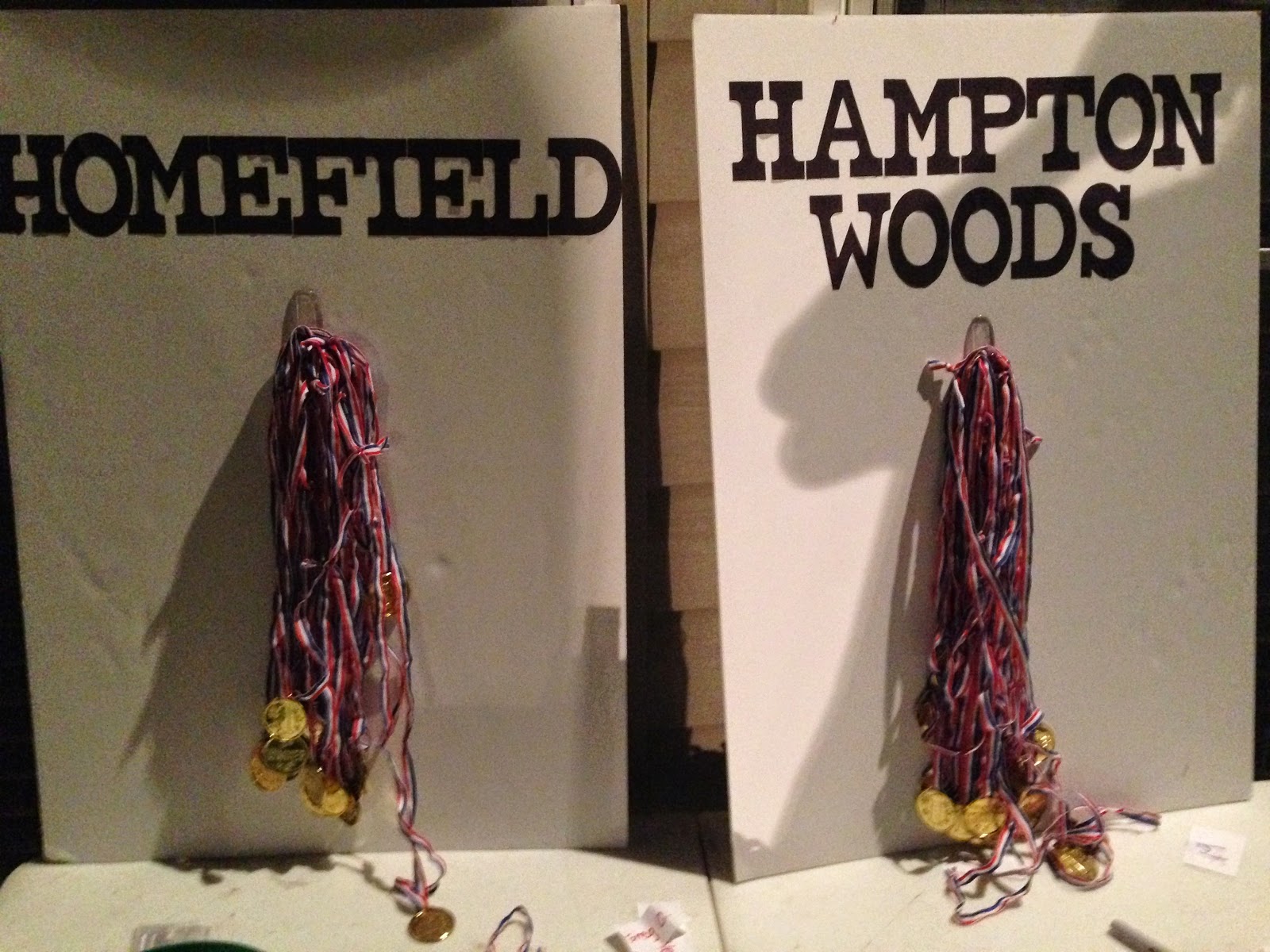 Each neighborhood got into it and got t-shirts made, which were so cute! We purchased a perpetual trophy so we can get the winning neighborhood engraved each year (because this WILL be an annual event), and we decided to keep score by awarding medals to the winner of each event.