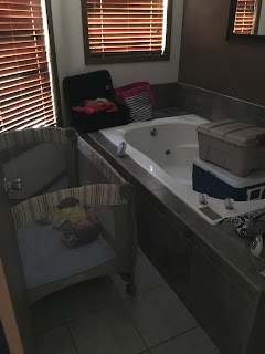 Our room had this separate bathtub room, which ended up being the perfect place for Nora to sleep..